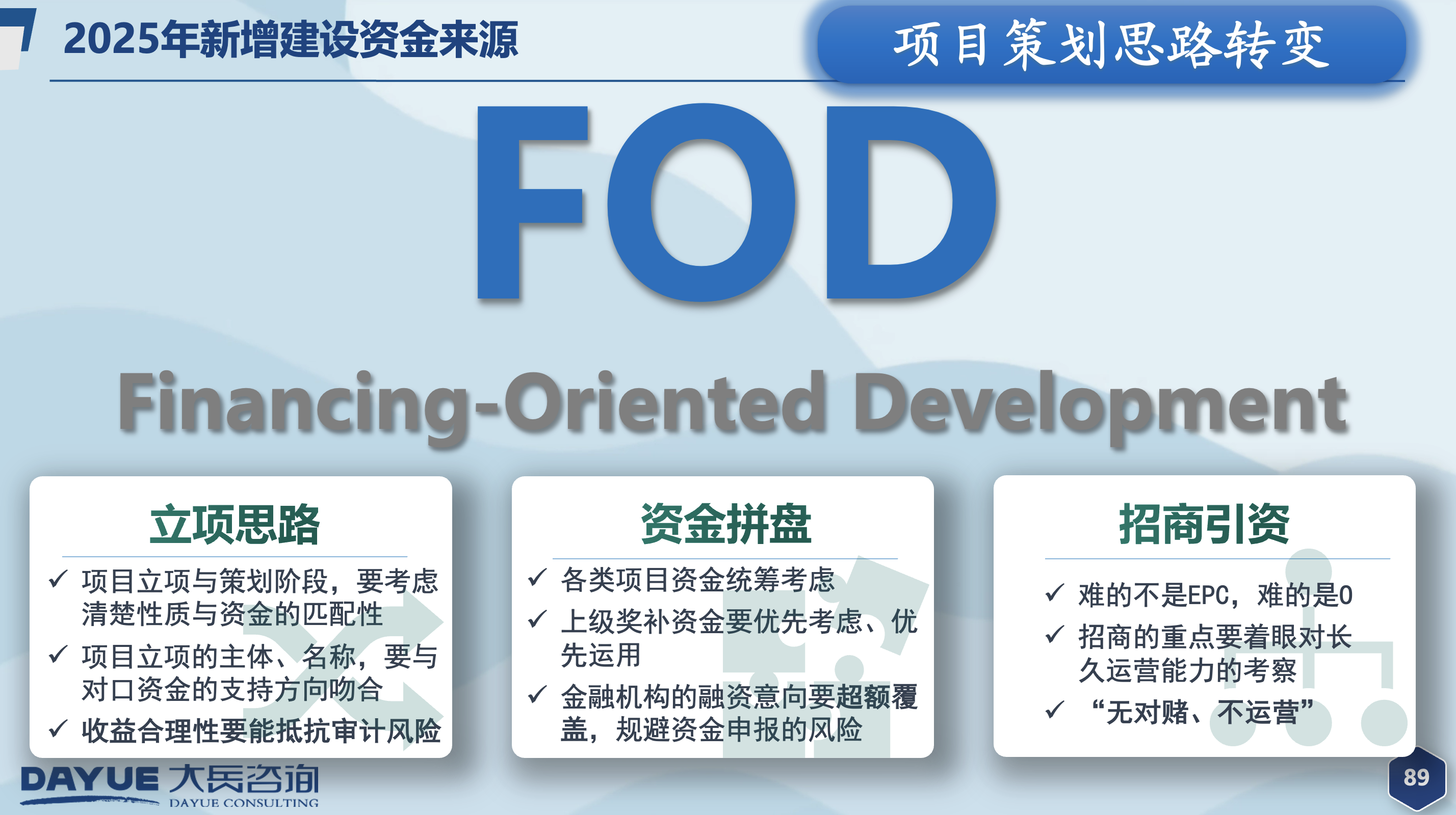 大岳咨詢以“提高投資與管理效率,助力經(jīng)濟和社會發(fā)展”為使命。近年來,公司持續(xù)為全國多地提供專項債、超長期特別國債、中央預(yù)算內(nèi)投資以及城市更新、全域土地綜合整治等熱點領(lǐng)域的咨詢服務(wù),積累了豐富的政策研究經(jīng)驗及項目實操經(jīng)驗。未來,大岳咨詢將繼續(xù)專注于為城市高效建設(shè)添磚加瓦,為地方高質(zhì)量發(fā)展提供堅實專業(yè)支撐。