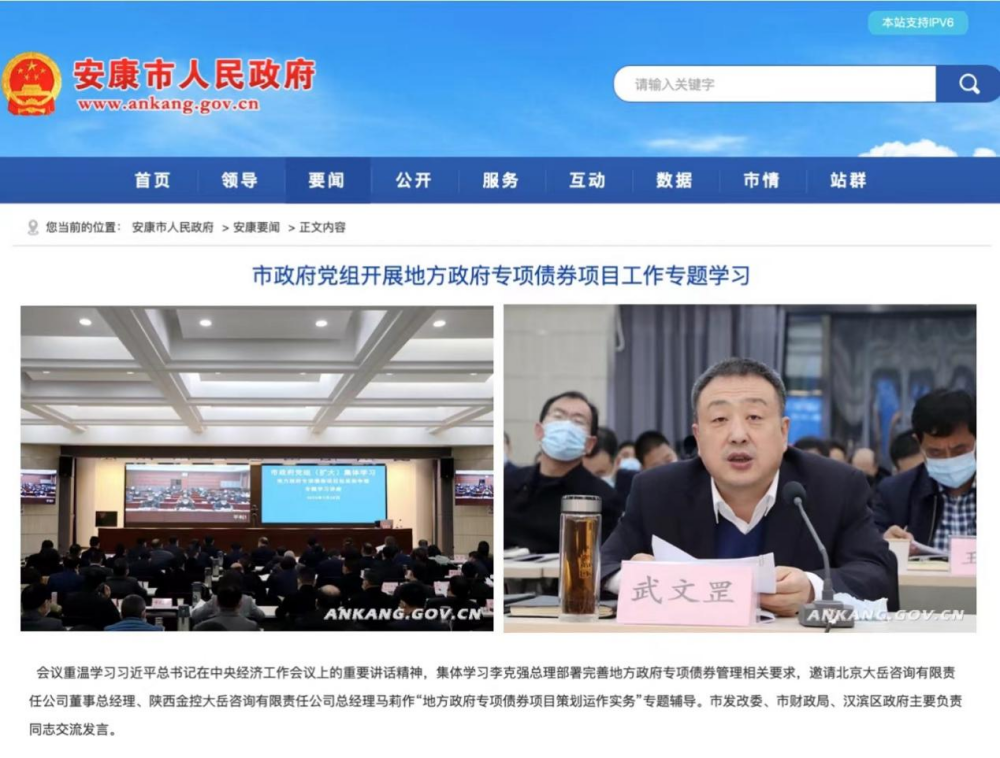 2月28日,大岳咨詢董事總經(jīng)理馬莉受安康市政府邀請(qǐng),就如何高質(zhì)量策劃包裝專項(xiàng)債券項(xiàng)目進(jìn)行了專題輔導(dǎo)。武文罡市長(zhǎng)主持會(huì)議,市政府黨組成員、市級(jí)領(lǐng)導(dǎo),全市各部門、縣區(qū)共計(jì)500余人參加。