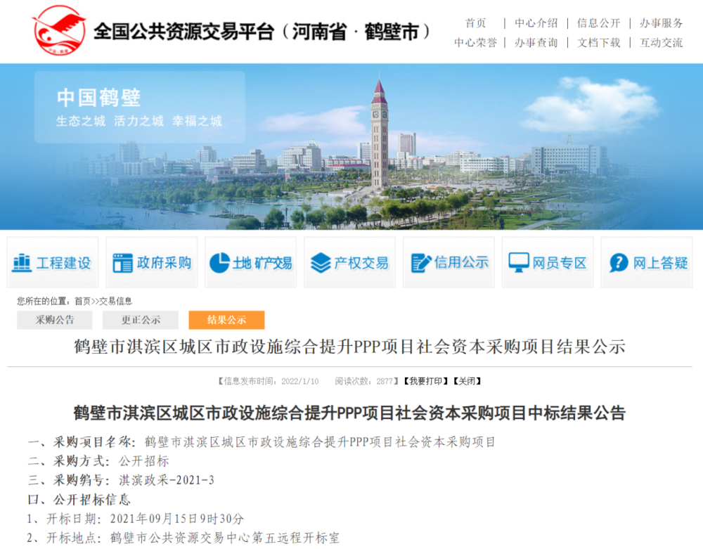 鶴壁東區(qū)市政設(shè)施綜合建設(shè)及提升PPP項(xiàng)目發(fā)布中標(biāo)公告